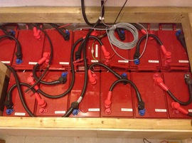 An important consideration when installing batteries is to make sure they are all fully charged before they are connected together. If the voltages are unequal current will flow between the batteries causing inefficiency and possible damage to the battery with the lowest state of charge. This is because most chargers treat the battery store as one big battery and are unable to tell the 'state' of individual batteries. Some chargers will however be able to monitor battery temperature and modify charge rates to the whole battery bank accordingly.